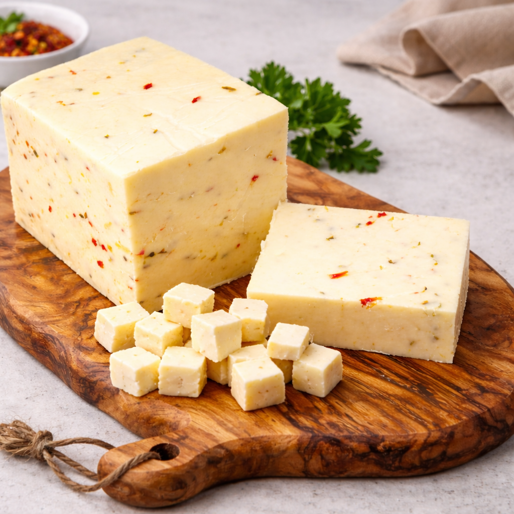 Monterey Jack cheese with the added heat of jalapenos. Spicy goodness!
