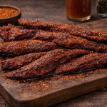 homemade beef jerky with teriyaki flavor.