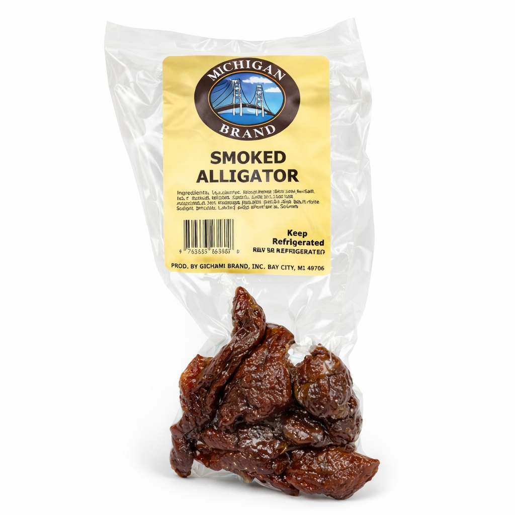 Real Gator smoked to perfection! 3 oz. package.